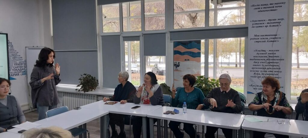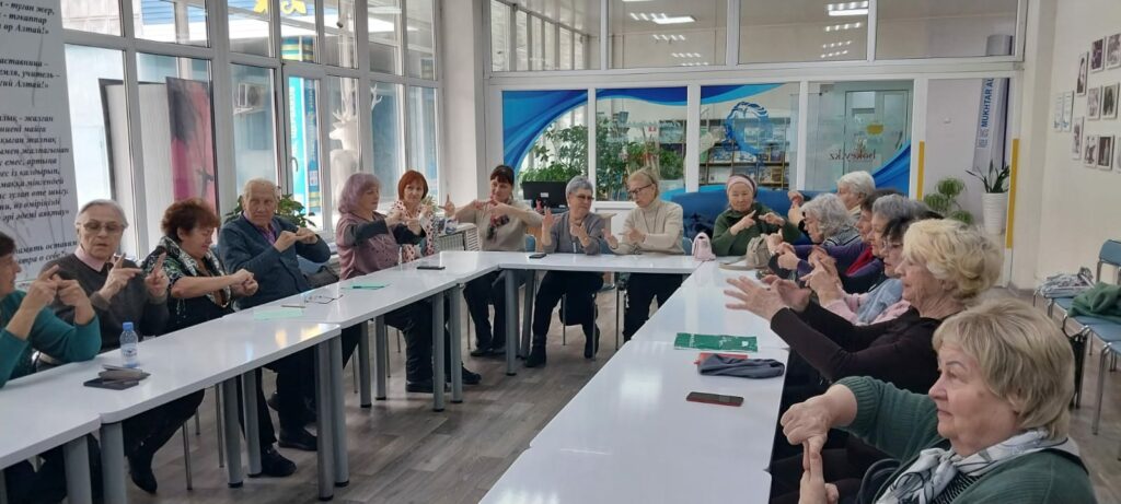 👵👴 Инструктордың жетекшілігімен қатысушылар есте сақтау, назар аудару және қимыл үйлесімділігін дамытуға арналған жеңіл әрі пайдалы жаттығулар орындады.