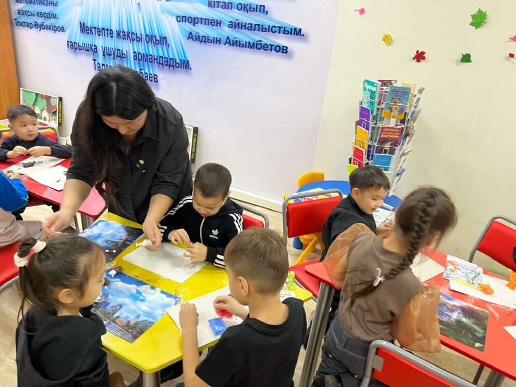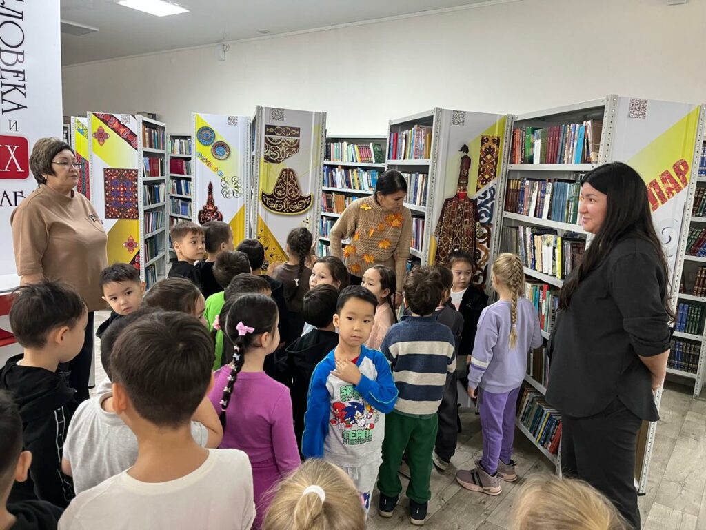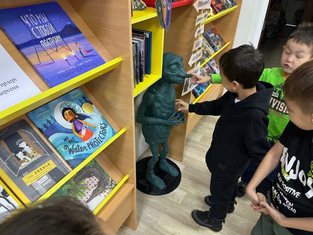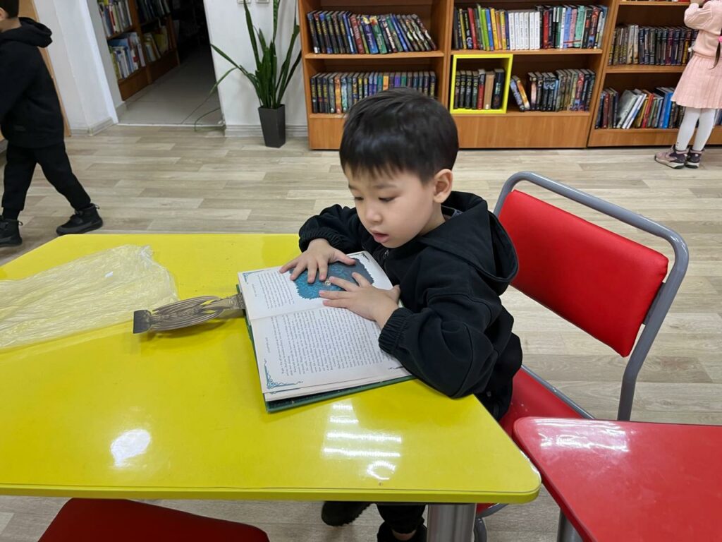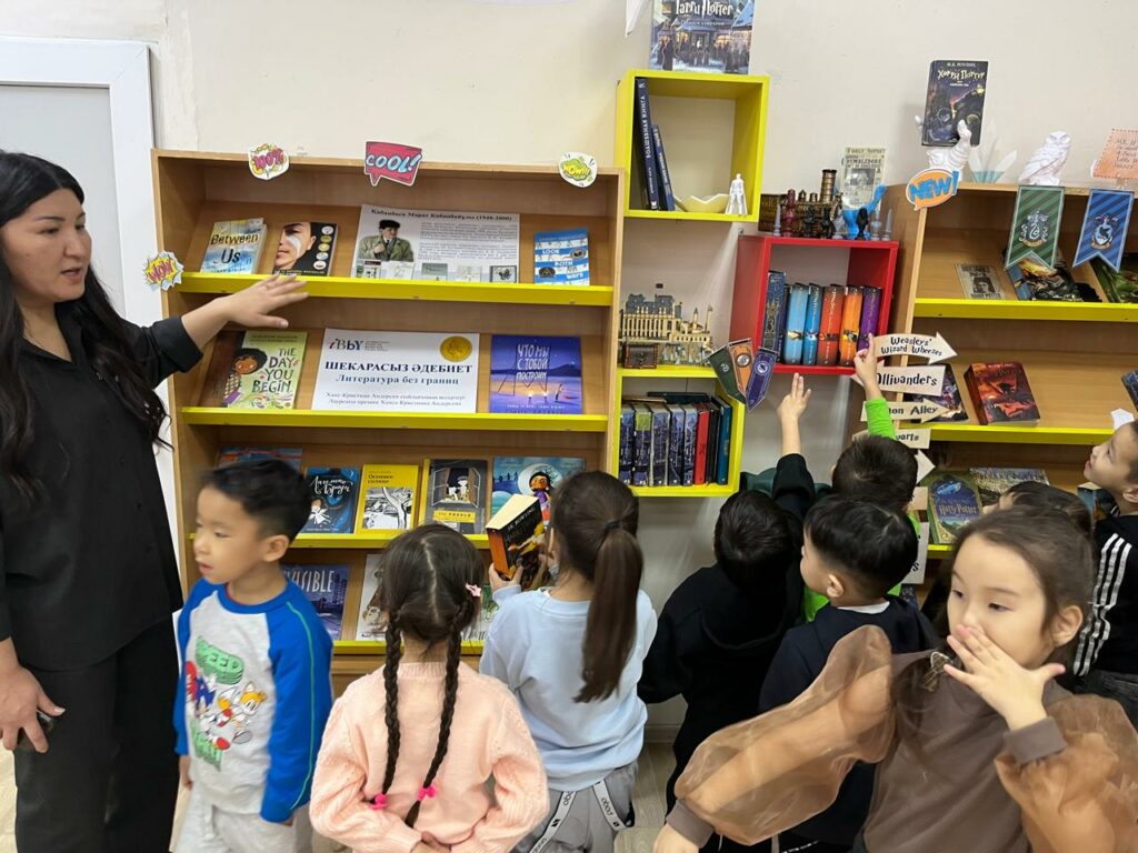 🔹 Кітапхана бойынша экскурсия — «ертегілер қорымен» және сүйікті кейіпкерлермен танысу.