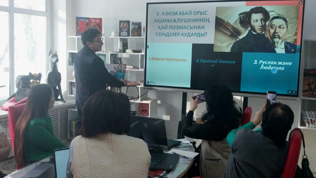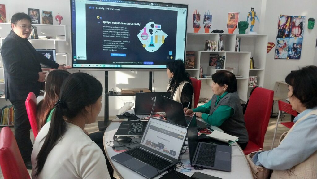 Бүгін Оралхан Бөке атындағы кітапханада шынайы шығармашылық атмосфера орнады: мектеп кітапханашылары Genially сервисімен танысу үшін кіріспе сабаққа жиналды — бұл оқу материалдарын жарқын, нақты және интерактивті әңгімелерге айналдыратын платформа.