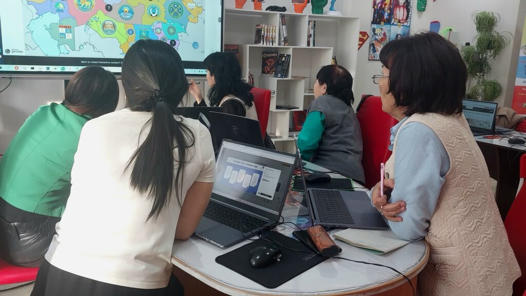 Бастапқы минуттардан бастап қатысушылар сервис мүмкіндіктерінің әлеміне қуанышпен енді: әртүрлі шаблондарды зерттеді, интерактивті элементтерді қосуға тырысты, түрлі форматтармен тәжірибе жасады. Әр сәт жұмыста қолдануға болатын жаңа идеяларды ашты — қызықты презентациялар, оқу ойындары немесе оқушыларға арналған түрлі-түсті визуалды нұсқаулар болса да.