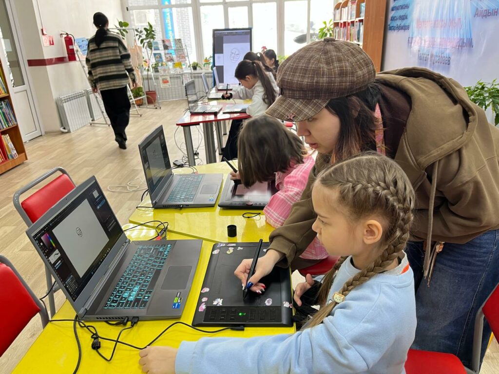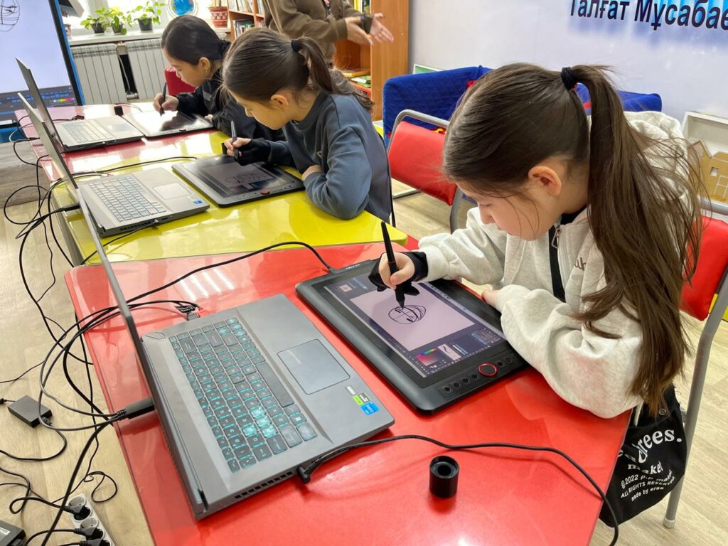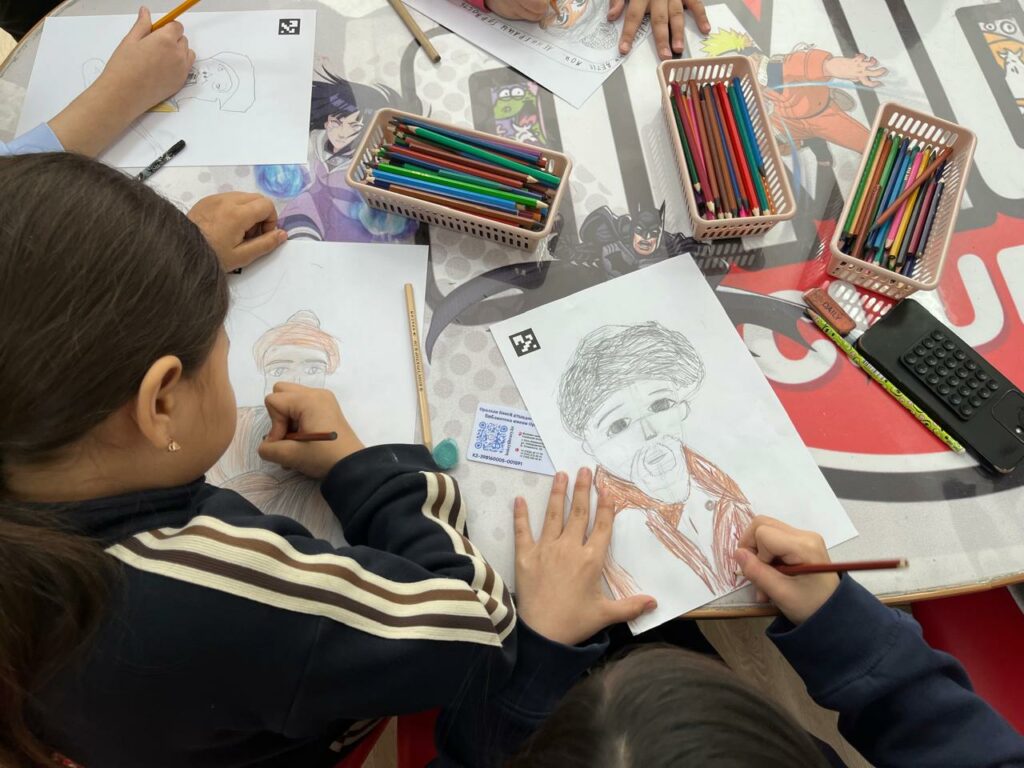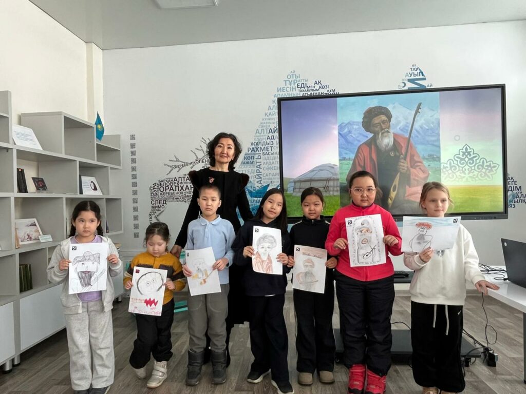 Әдеби бөлімнен кейін жас суретшілер ақынның портретін салуға кірісті. Бірі классикалық әдіспен – қарындаш пен бояу арқылы жұмыс жасаса, енді бірі графикалық планшеттерде цифрлық форматта орындады. Дәстүр мен заманауи технологияның үндесуі балалардың шығармашылық қиялын кеңейтіп, Жамбыл бейнесін өзіндік көзқараспен жеткізуге мүмкіндік берді.