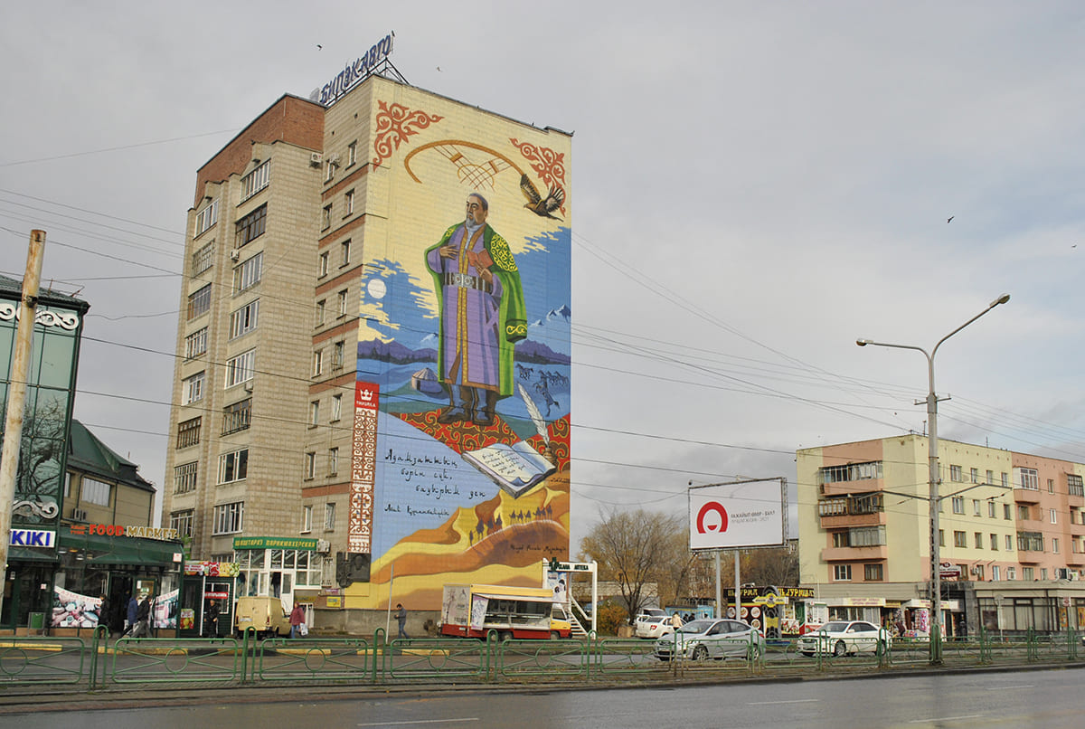 Абай Даңғылы Граффити Абай Құнанбаев. Төмендегі жазу-ақынның қара сөздерінің бірі бүкіл адамзатты бауырлас сияқты сүй. 25.09.2017 ж.Автор. Суретші А. Нұрбеков.