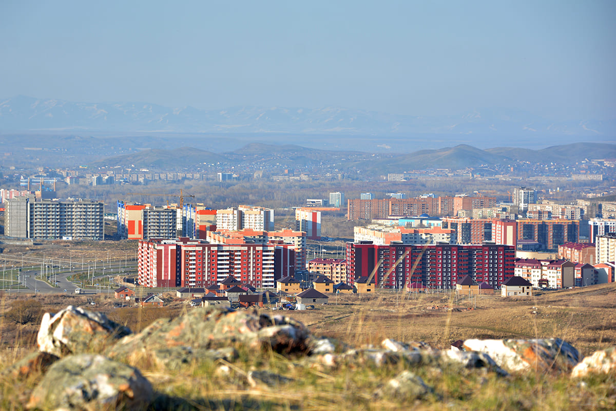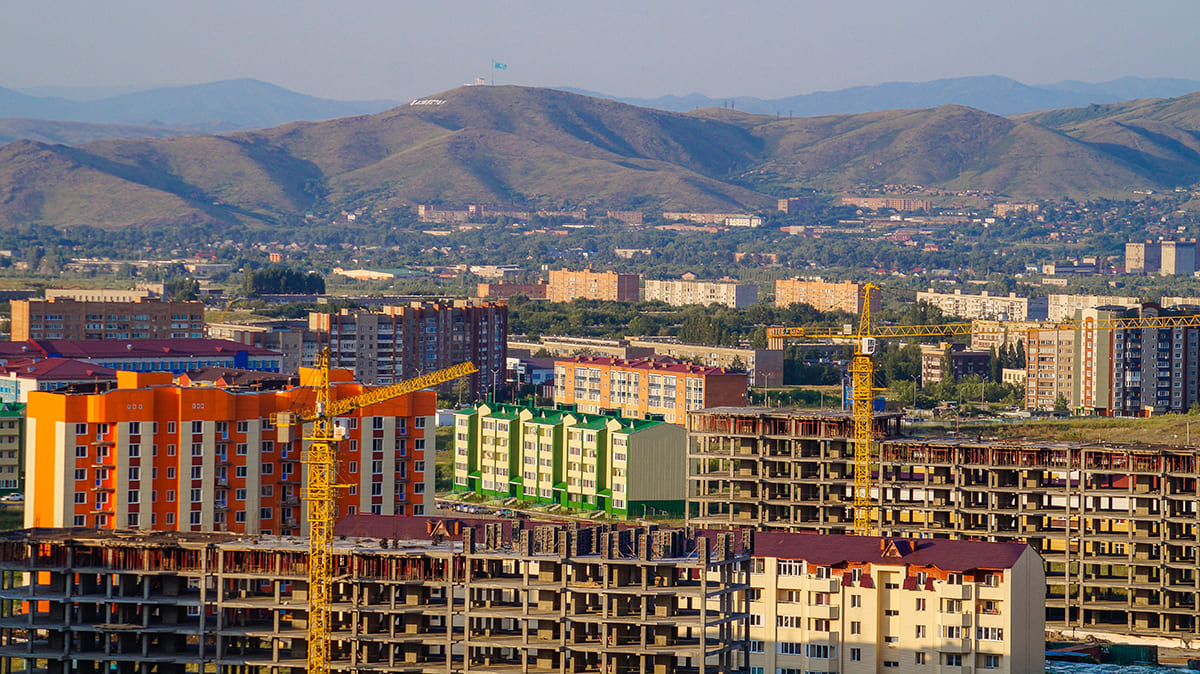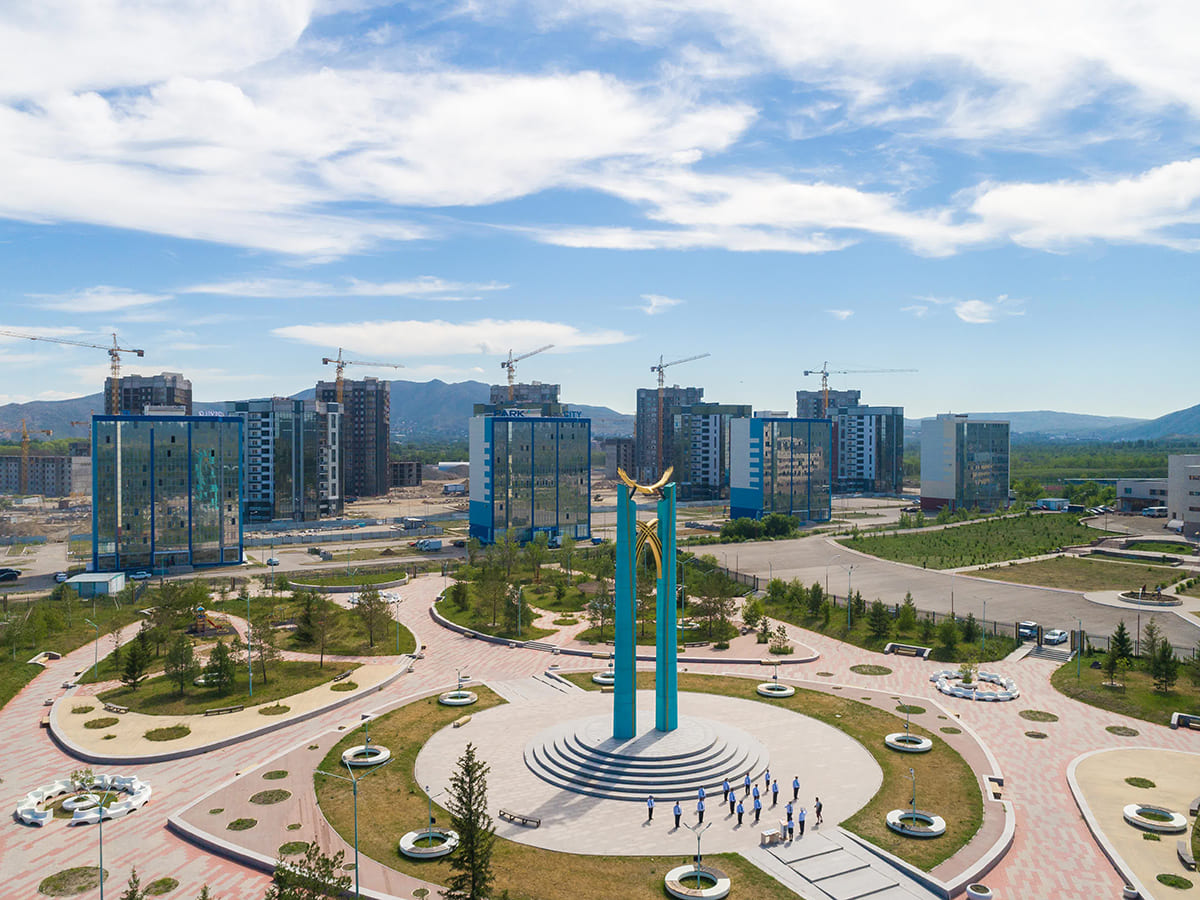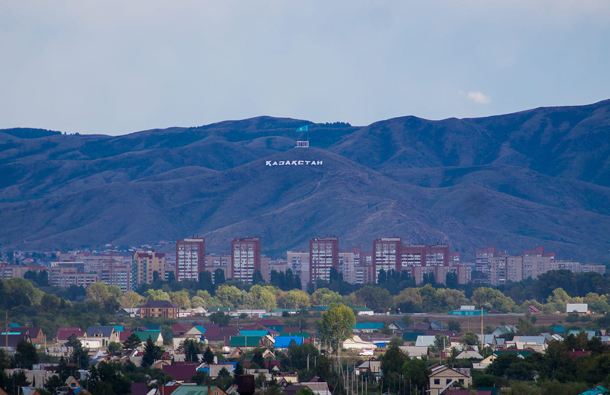 Қазақстан деген жазуы бар таудағы байқау алаңы