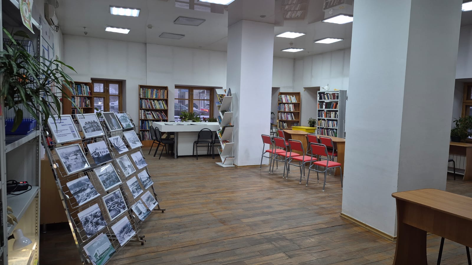 Келушілер үшін жайлы әрі функционалды аймақтар жасалған: әдебиетпен жұмыс істеуге арналған оқу залы, мектеп оқушыларына арналған кітаптар мен үстел ойындарының кең таңдауы бар абонемент бөлімі, сондай-ақ ең кішкентай оқырмандарға арналған жеке жайлы зал бар.